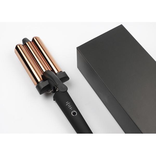 Dual Voltage Crimp LED Temperature Display Titanium Tourmaline Triple Barrels Three Barrel Curling Iron Wand